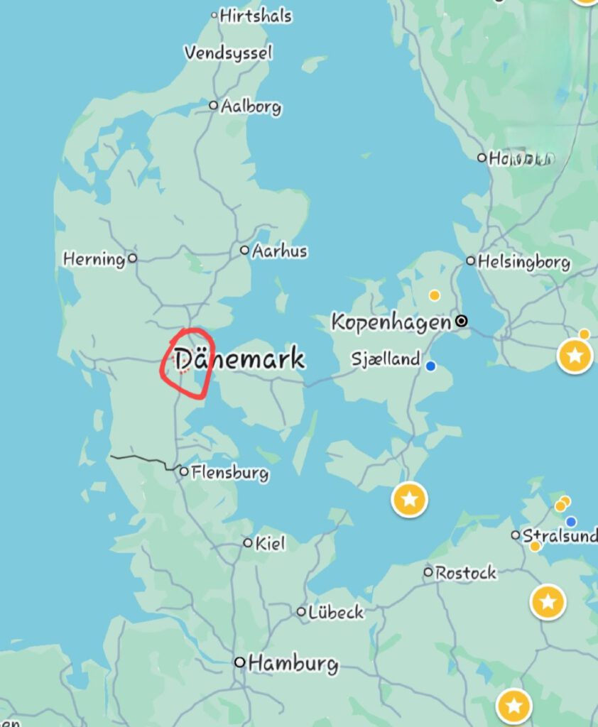 Zum Sonntag, dem Geburtstag, werden dann alle Mitreisenden der Skandinavien-Tour vor Ort sein – also 3 – Mitreisende 1 aus Thüringen, Mitreisende 2 aus Hessen und ich 🙂 . Am Montagvormittag (ca. 11:00 Uhr) starten die Zruppe erst mal in Richtung Berlin über Erfurt. Dann heißt es, einmal übernachten in der heimischen Wohnung in Berlin und dann geht’s am Dienstag Richtung Dänemark, Kolding, ins erste Urlaubshotel 🙂