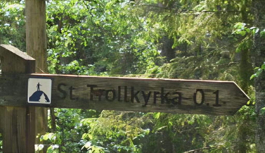Infotafeln und ein kleiner Kiosk – den ignorieren wir. Die Wanderroute ist schnell gewählt: die große Trollkyrka-Runde, ca. 5,4 km. Unser Ziel: die Trollkyrka, etwa in der Mitte der Strecke (2,7 km).